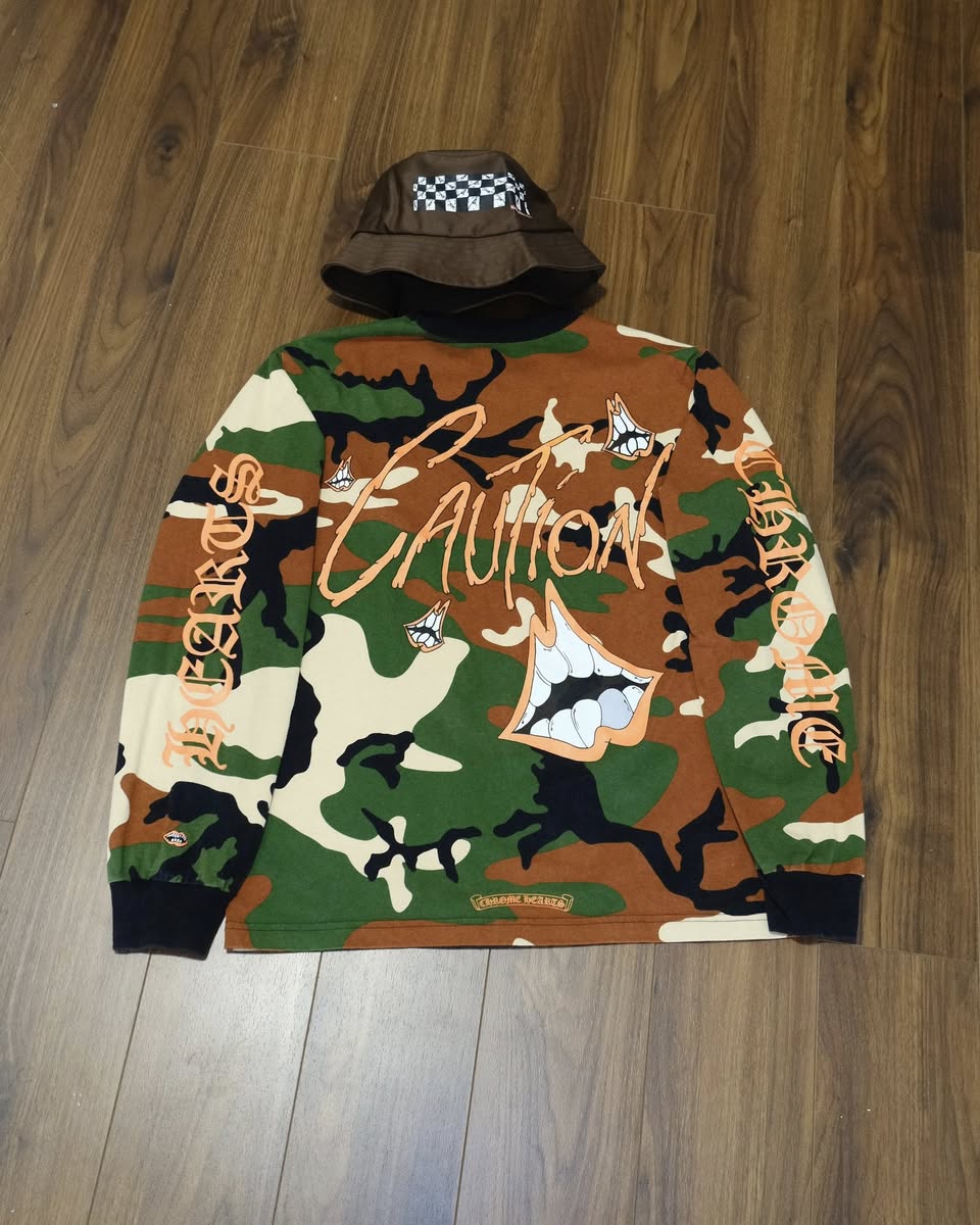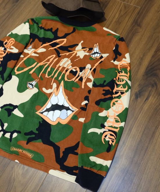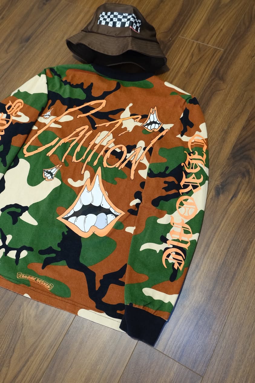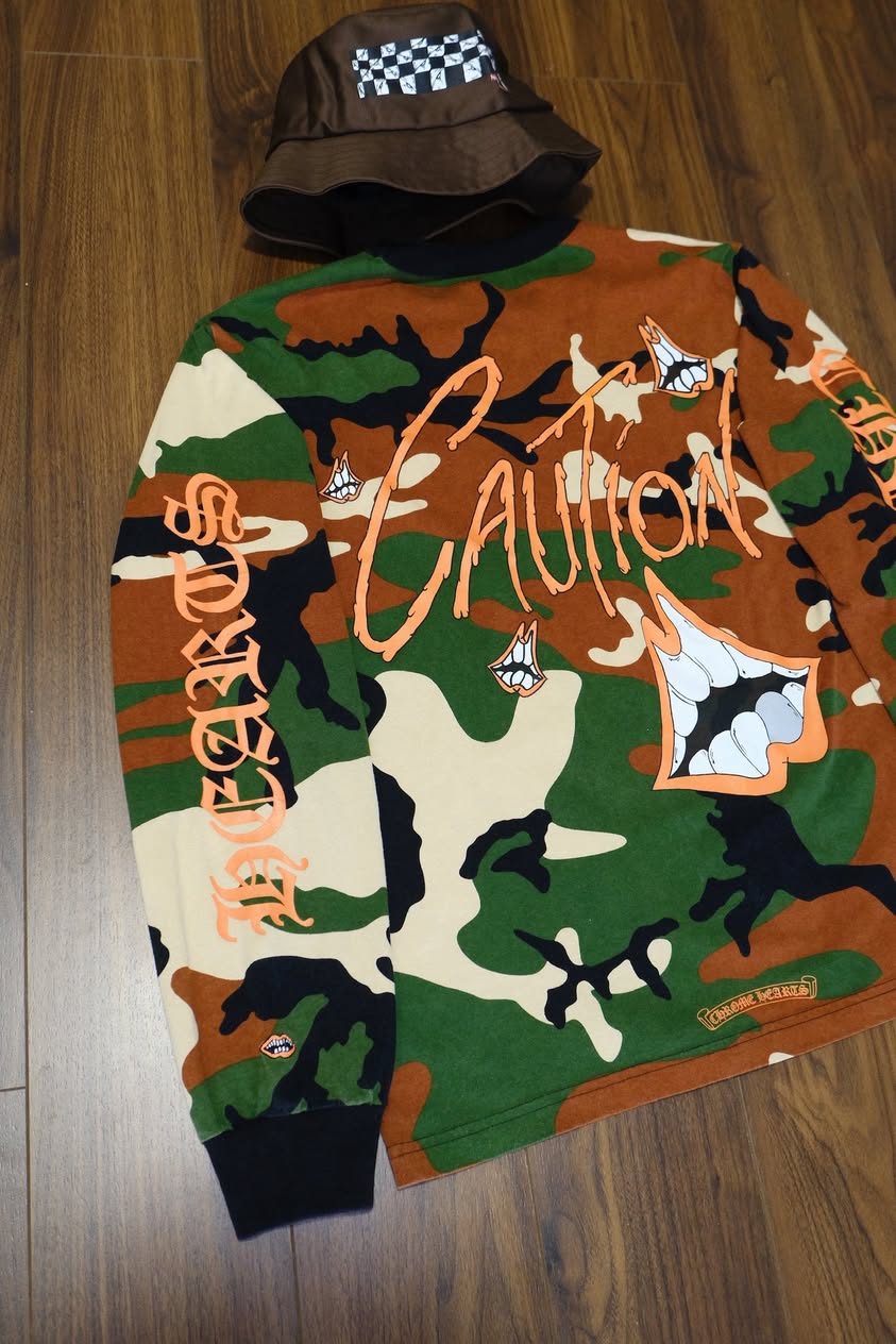 Chrome Hearts Camouflage Matty Boy Caution Long Sleeve T-Shirt
