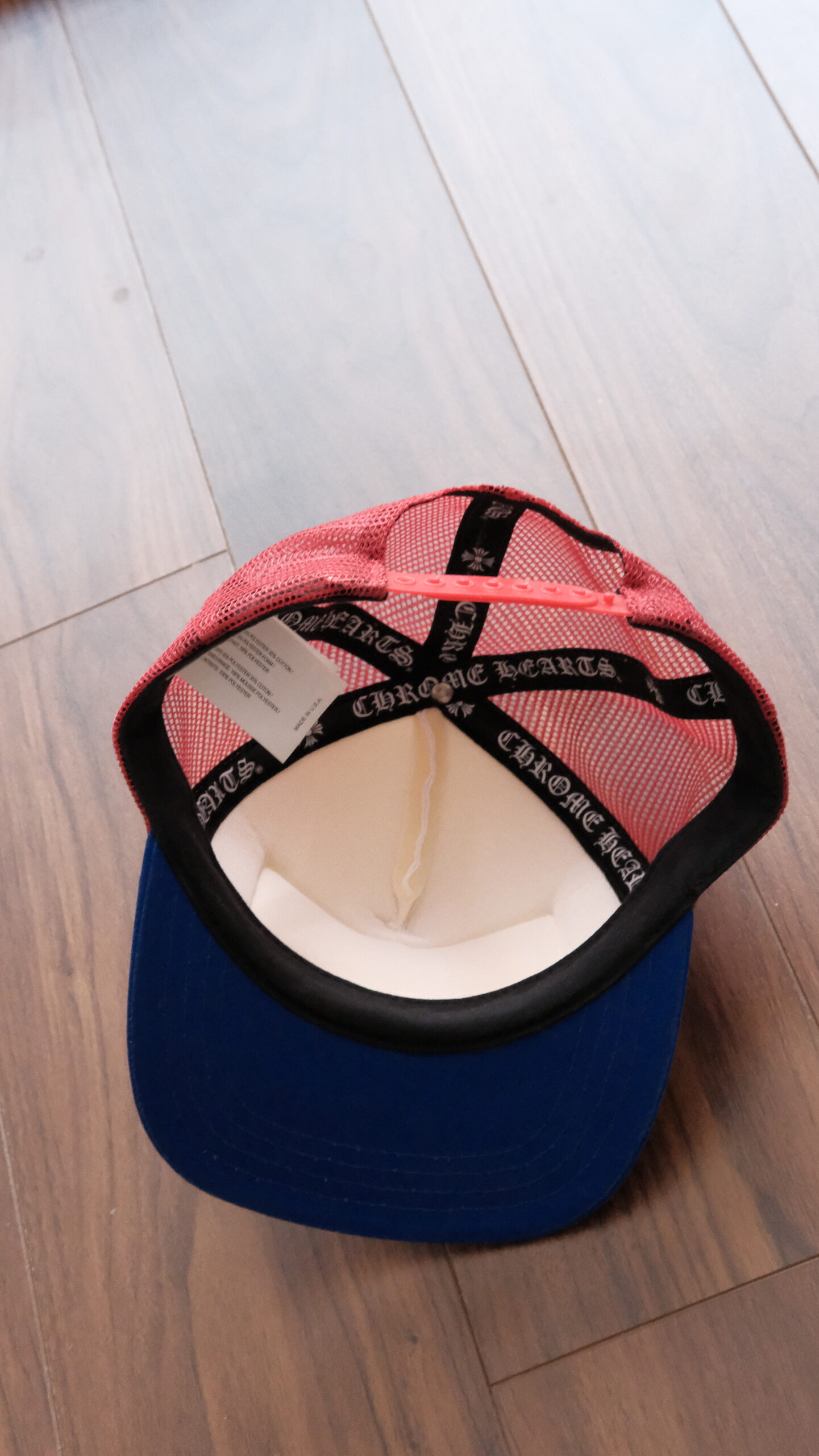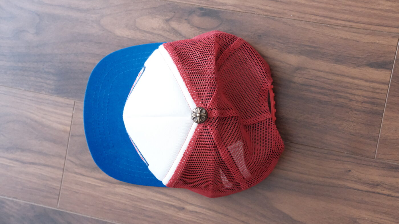 Chrome Hearts CH Hollywood Red & Blue Trucker Hat nổi bật với phối màu đỏ – xanh ấn tượng cùng kiểu dáng trucker mang phong cách riêng của thương hiệu Chrome Hearts. Logo CH Hollywood đặc trưng tạo điểm nhấn đậm chất streetwear cao cấp. Phần lưới phía sau thoáng khí, đội thoải mái, dễ dàng phối với nhiều outfit hàng ngày.