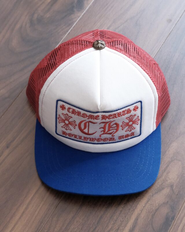 Chrome Hearts CH Hollywood Red & Blue Trucker Hat stands out with its bold red and blue colorway and classic trucker design. Featuring the iconic CH Hollywood logo, this cap combines luxury street style with breathable mesh for all-day comfort. A perfect statement accessory to elevate any casual outfit.
