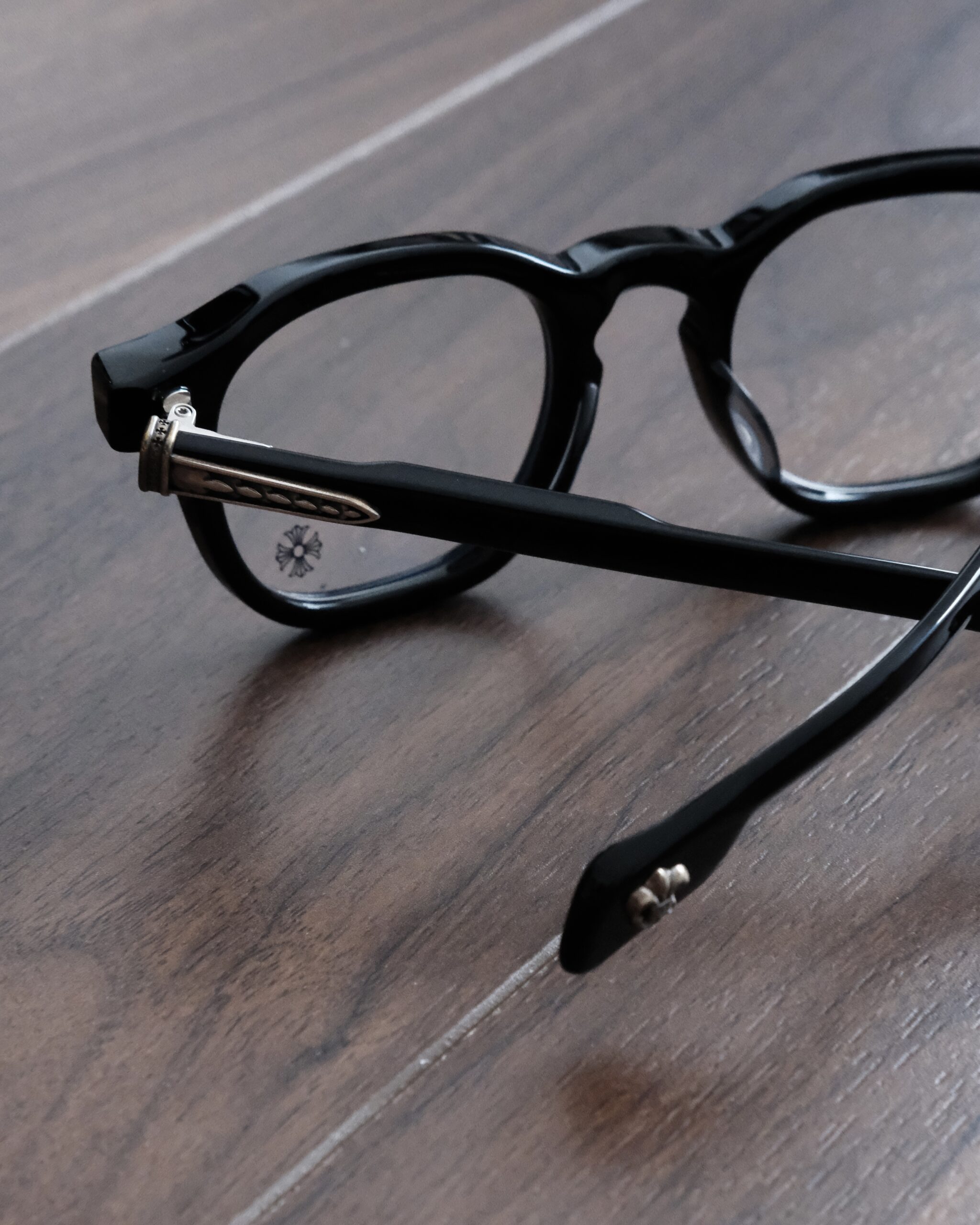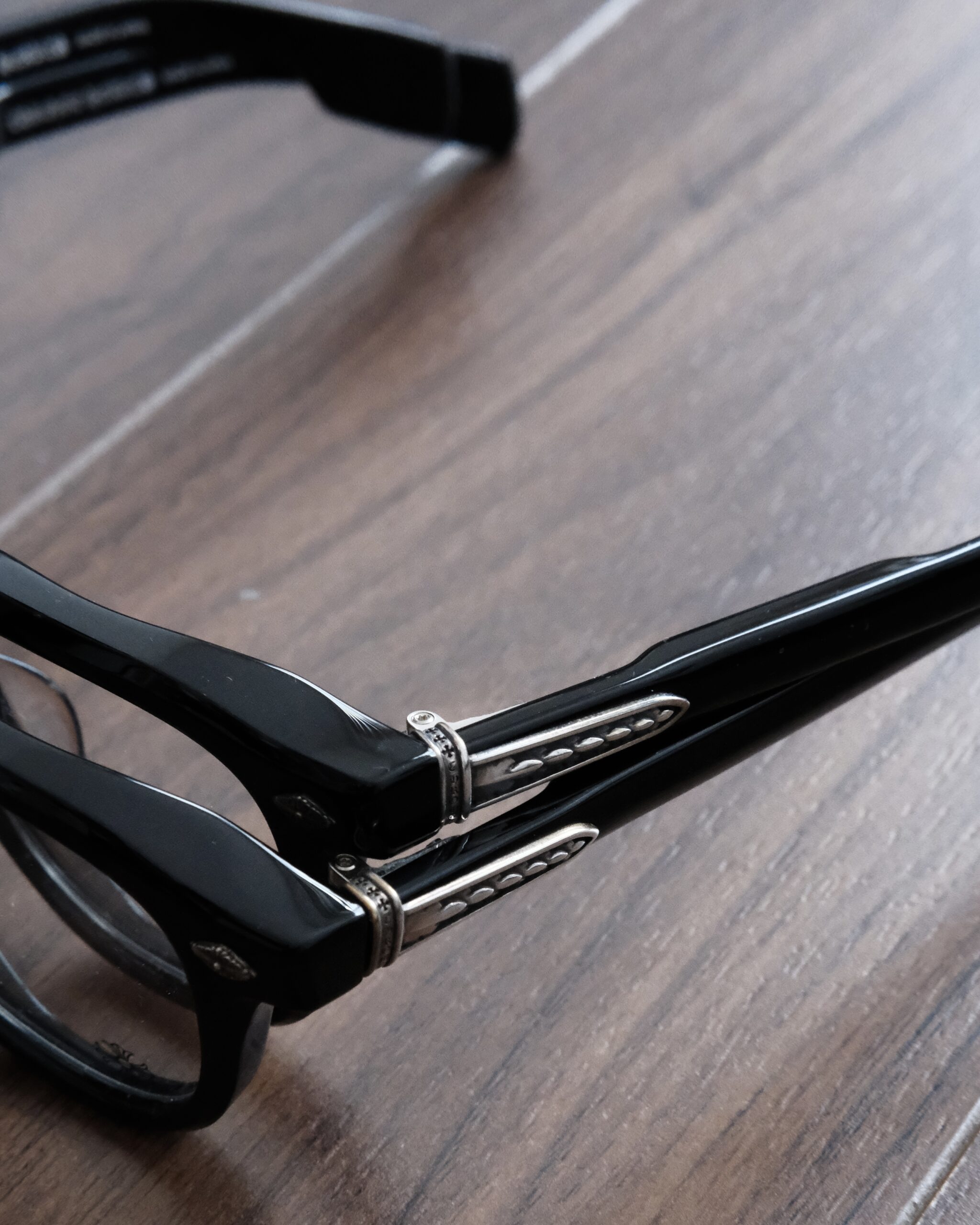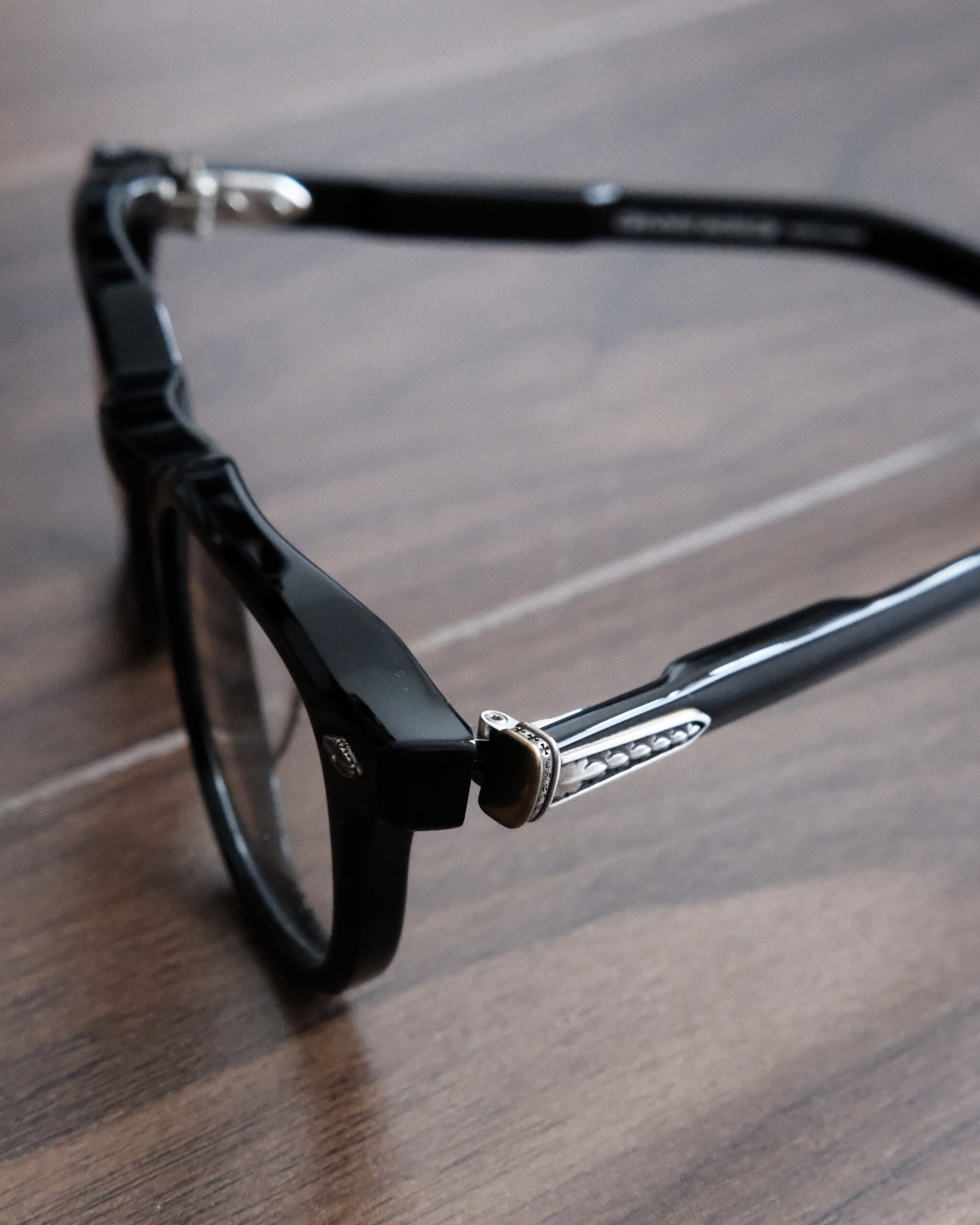 Chrome Hearts CHIRP CHIRP Black Silver Glasses có thiết kế gọng đen thanh lịch, kết hợp với các chi tiết bạc sterling silver đặc trưng ở phần càng kính. Những điểm nhấn bạc tinh xảo thể hiện rõ nét phong cách gothic thủ công biểu tượng của Chrome Hearts, tạo nên vẻ ngoài sang trọng, cá tính và đậm chất thương hiệu. ✨