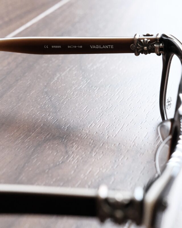 Chrome Hearts VAGILANTED BRBBR Glasses feature a bold brown frame paired with the brand’s iconic Cross Plus charm at the temple, crafted in sterling silver. The detailed charm adds a strong gothic signature, giving the frame a distinctive Chrome Hearts edge while keeping a refined luxury look. ✨